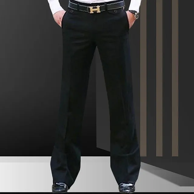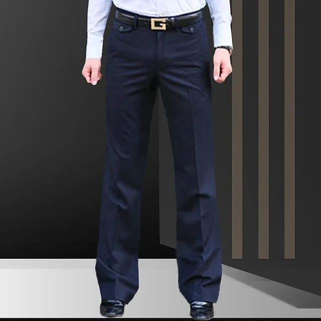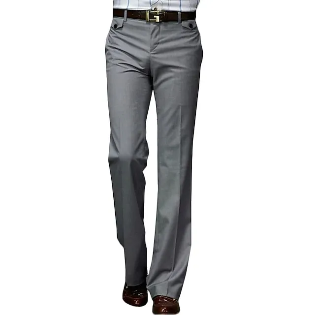 Men’s Dress Pants Flared Pants Bell Bottom Trousers Pocket Straight Leg Solid Colored Comfort Wedding Office Business Streetwear Retro Black Grey Micro-elastic
