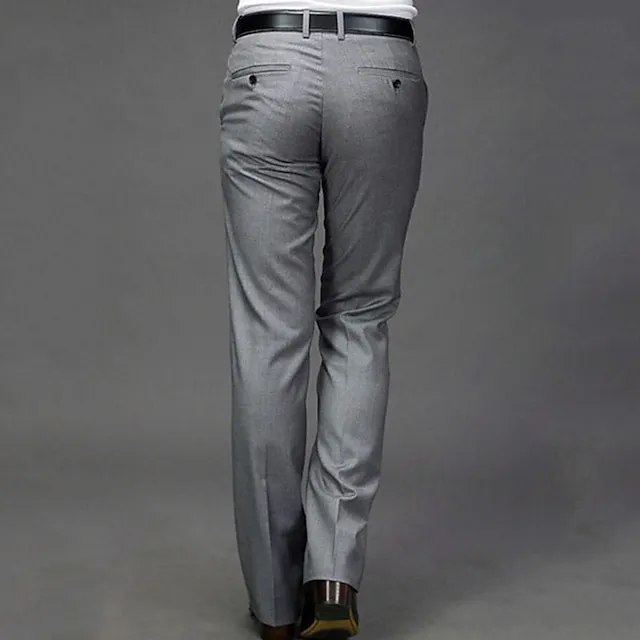 Men's Dress Pants Flared Pants Bell Bottom Trousers Pocket Straight Leg Solid Colored Comfort Wedding Office Business Streetwear Retro Black Grey Micro-elastic