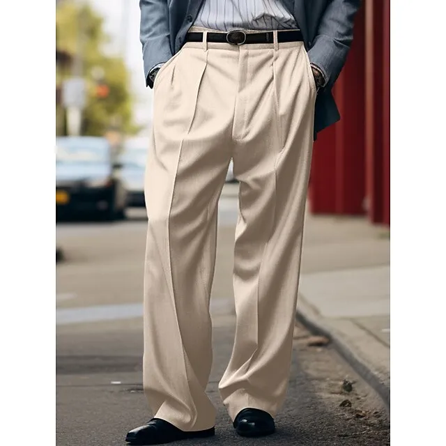 Men’s Dress Pants Trousers Pleated Pants Suit Pants Pocket Plain Comfort Breathable Outdoor Daily Going out Fashion Casual Black White