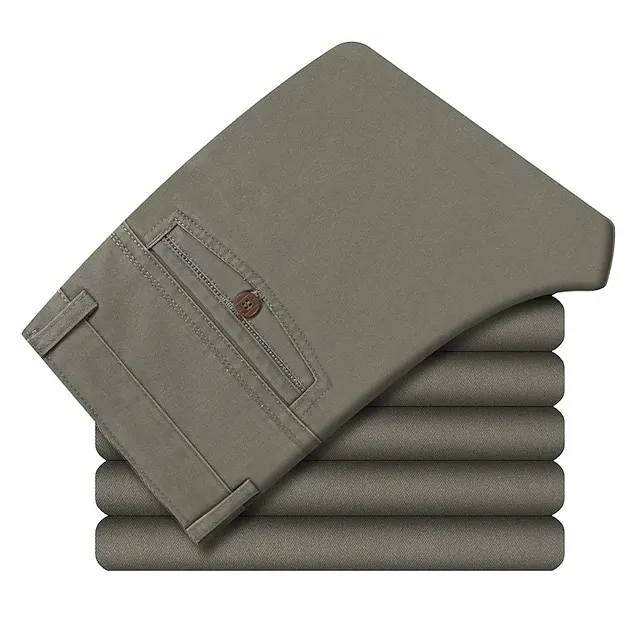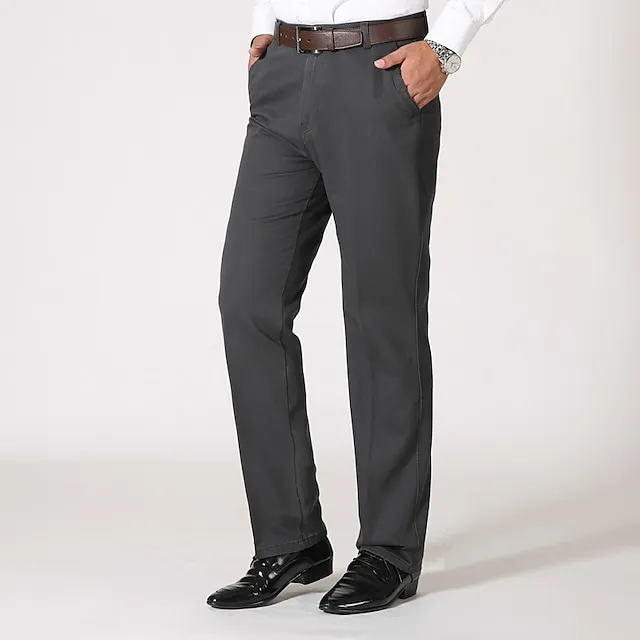 Men’s Dress Pants Trousers Pocket Straight Leg Plain Breathable Soft Wedding Business Daily 100% Cotton Streetwear Stylish Gray Green Black High Waist Micro-elastic