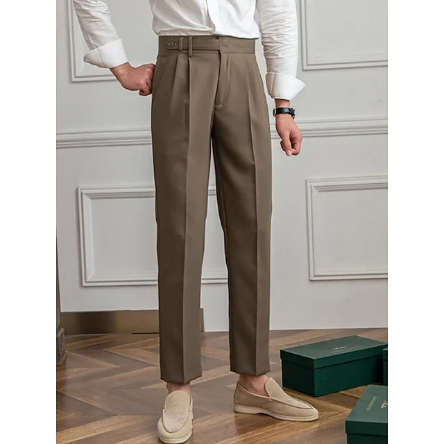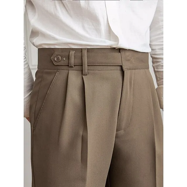 Men's Dress Pants Trousers Suit Pants Gurkha Pants Pleated High Rise Plain Comfort Breathable Outdoor Daily Going out Vintage Elegant Black Khaki