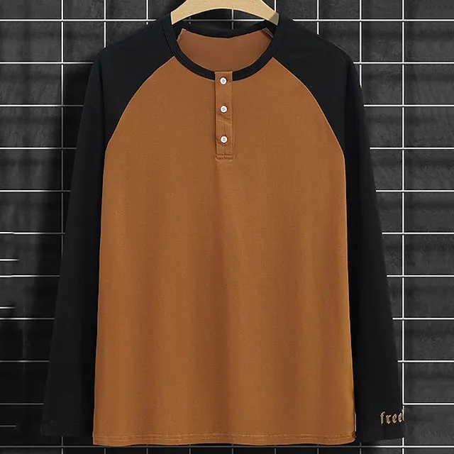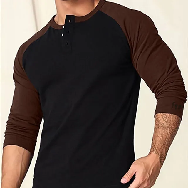 Men’s Henley Shirt Tee Top Long Sleeve Shirt Color Block Raglan Sleeve Henley Street Vacation Long Sleeve Patchwork Clothing Apparel Fashion Designer Basic