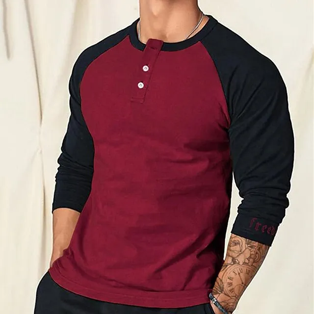 Men's Henley Shirt Tee Top Long Sleeve Shirt Color Block Raglan Sleeve Henley Street Vacation Long Sleeve Patchwork Clothing Apparel Fashion Designer Basic