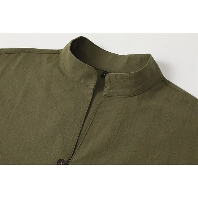 Men’s Linen Shirt Shirt Button Up Shirt Casual Shirt Summer Shirt Black White Pink Long Sleeve Plain Band Collar Summer Spring & Fall Daily Vacation Clothing Apparel