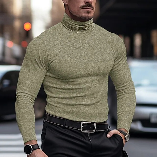 Men's T shirt Tee Henley Shirt Tee Top Long Sleeve Shirt Plain Turtleneck Street Vacation Long Sleeve Clothing Apparel Fashion Designer Basic