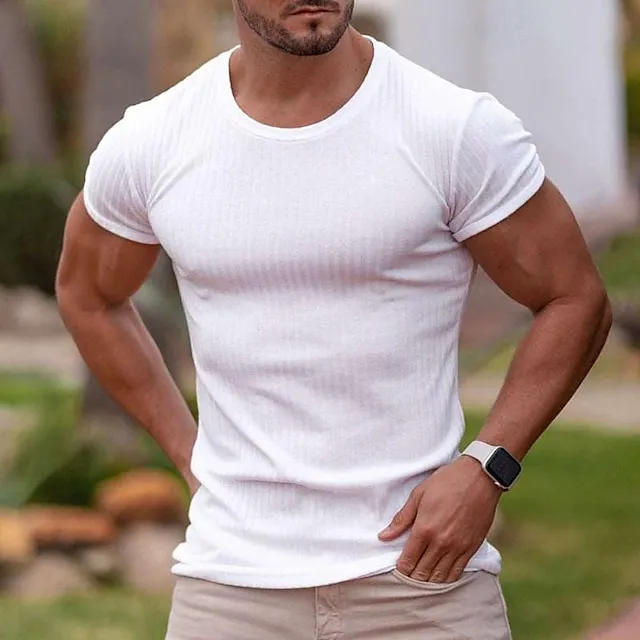 Men’s T shirt Tee Tee Short Sleeve Shirt Tee Top Plain Pit Strip Crew Neck Street Vacation Short Sleeve Sexy Clothing Apparel Fashion Designer Basic