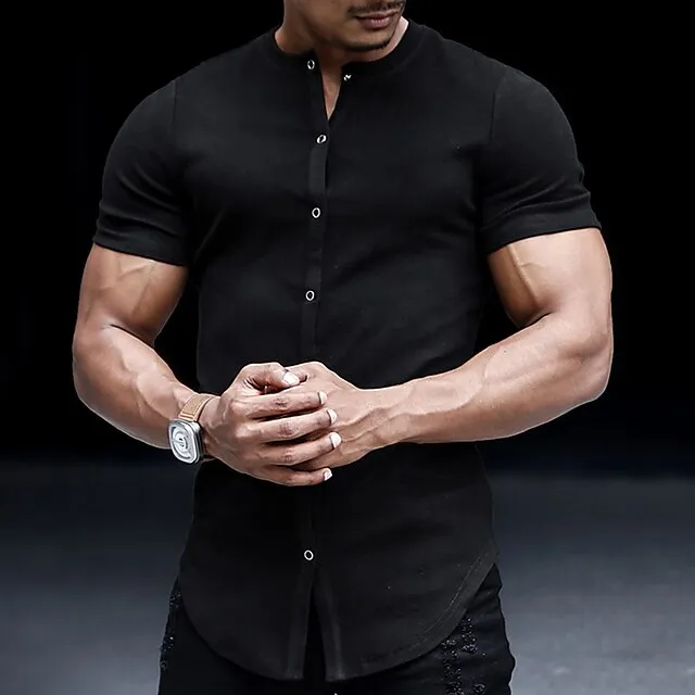 Men’s T shirt Tee Tee Top Plain Collar Street Vacation Short Sleeves Button Clothing Apparel Fashion Designer Basic