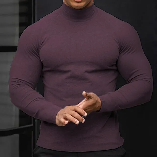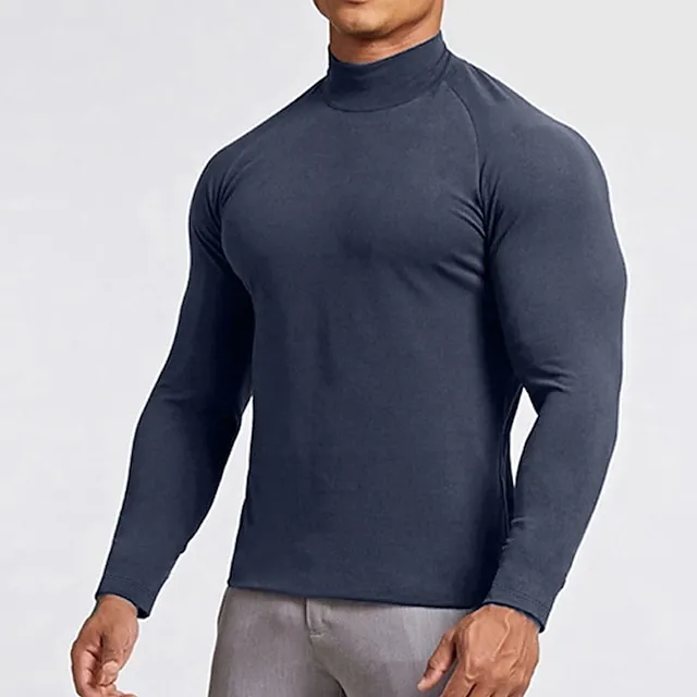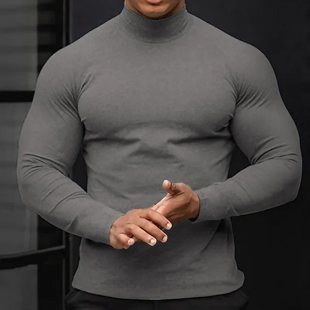 Men’s T shirt Tee Turtleneck shirt Long Sleeve Shirt Holiday Rolled collar Holiday Vacation Long Sleeve Clothing Apparel Casual Comfortable Essential