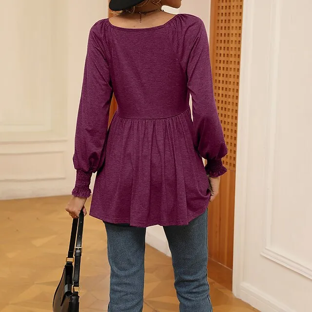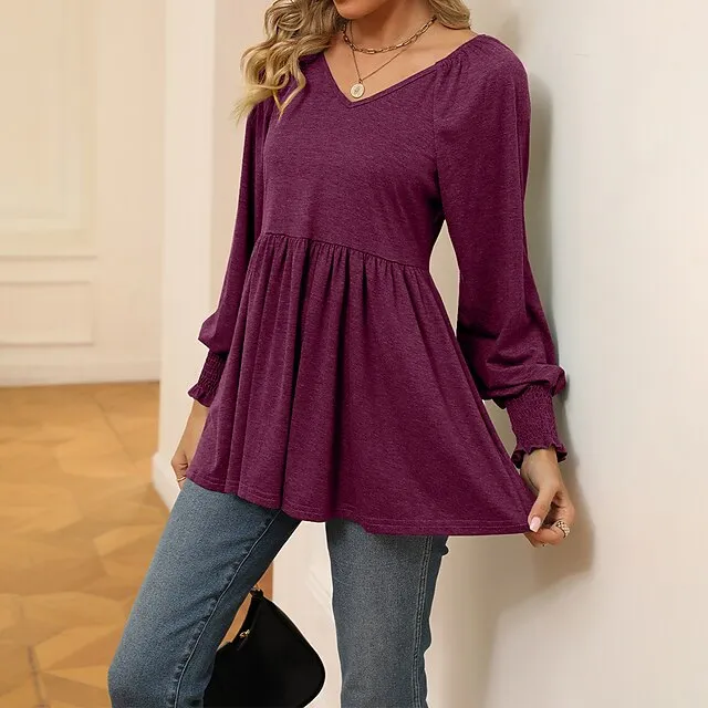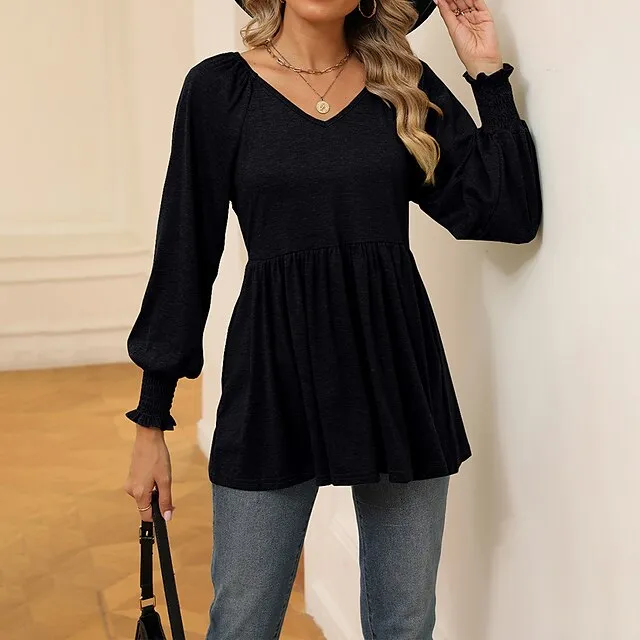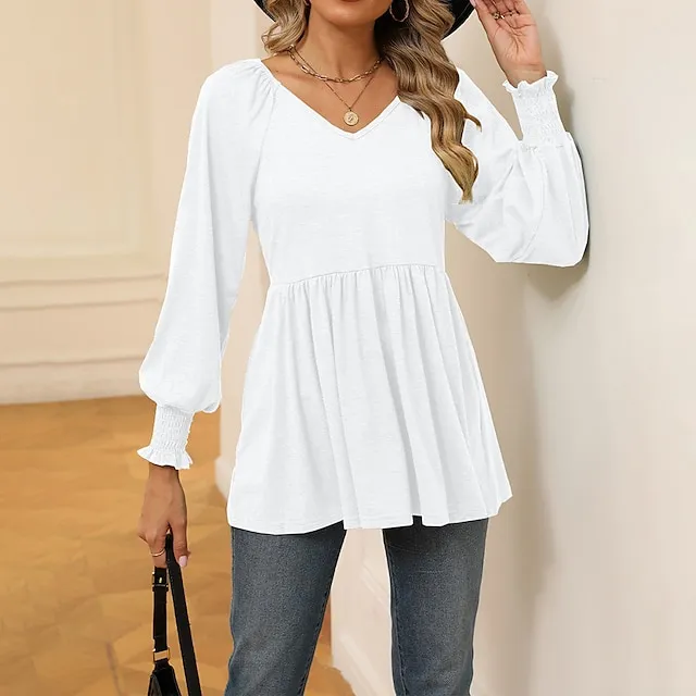 Shirt Blouse Women’s Black White Wine Solid / Plain Color Flowing tunic Daily Fashion V Neck Regular Fit S