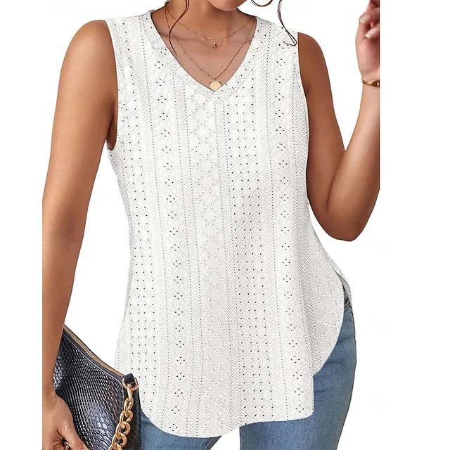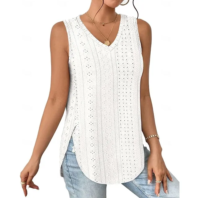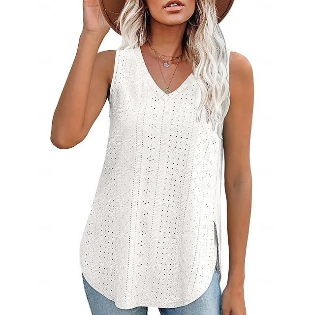 Tank Women's Black White Light Green Plain Split Street Daily Fashion V Neck Regular Fit S