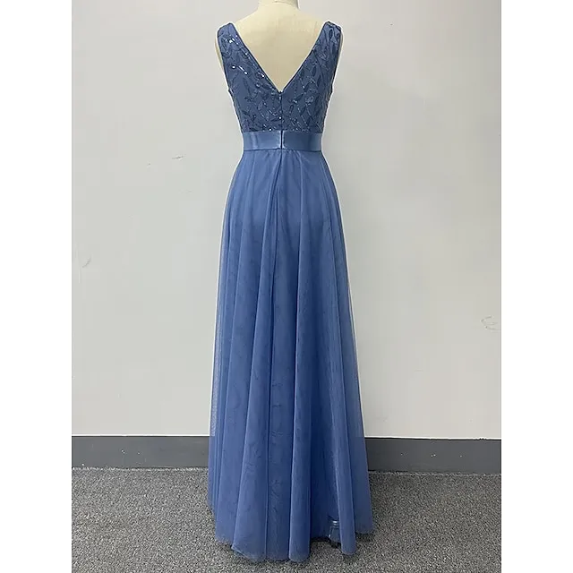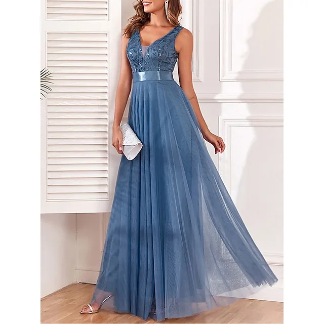 Women’s Sequin Dress Prom Dress Party Dress Sparkly Dress Long Dress Maxi Dress Blue Sleeveless Sparkly Glitter Fall Winter V Neck Fashion Evening