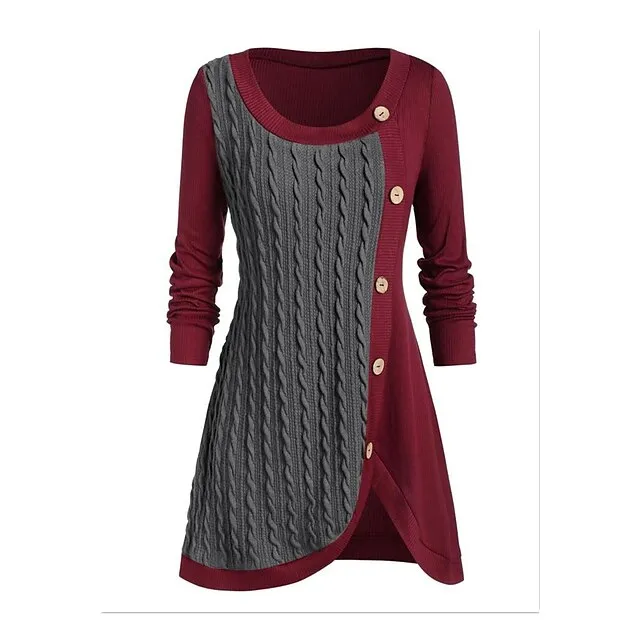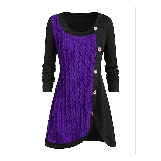 Women’s Sweater Dress Jumper Dress Casual Dress Mini Dress Knitwear Fashion Modern Street Daily Holiday Vacation Crew Neck Long Sleeve Patchwork Button Loose Fit Pink Wine Purple L XL XXL 3XL