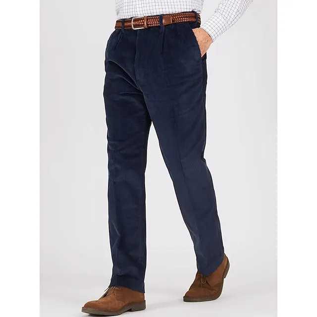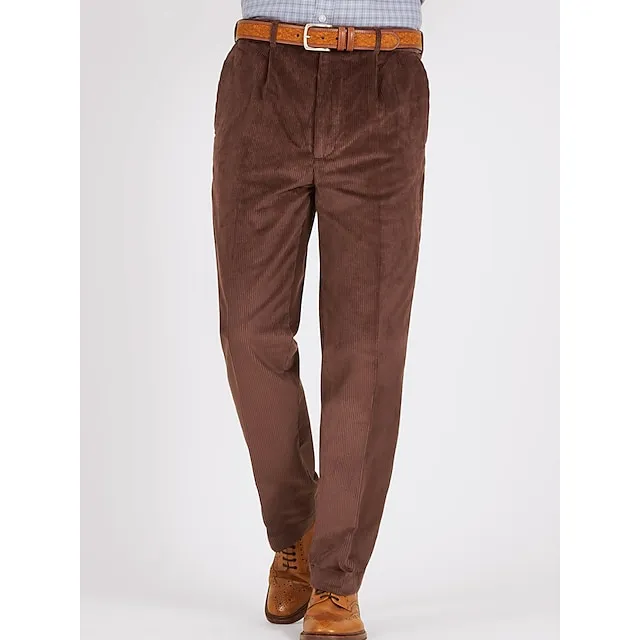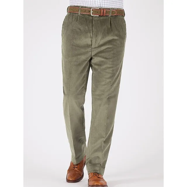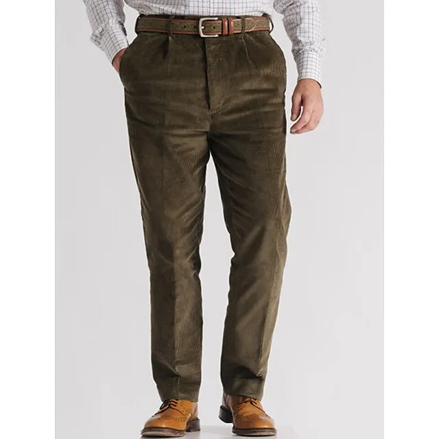 Men's Dress Pants Corduroy Pants Trousers Suit Pants Pocket Straight Leg Plain Comfort Breathable Outdoor Daily Going out Fashion Casual Black Army Green