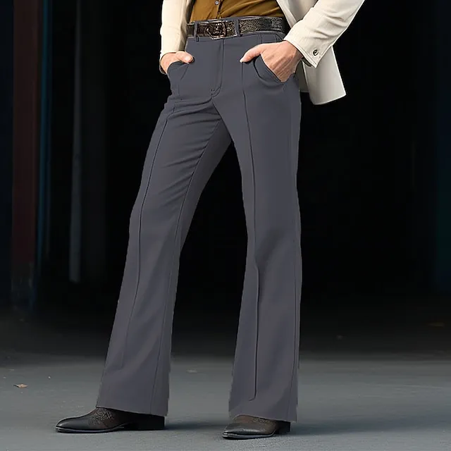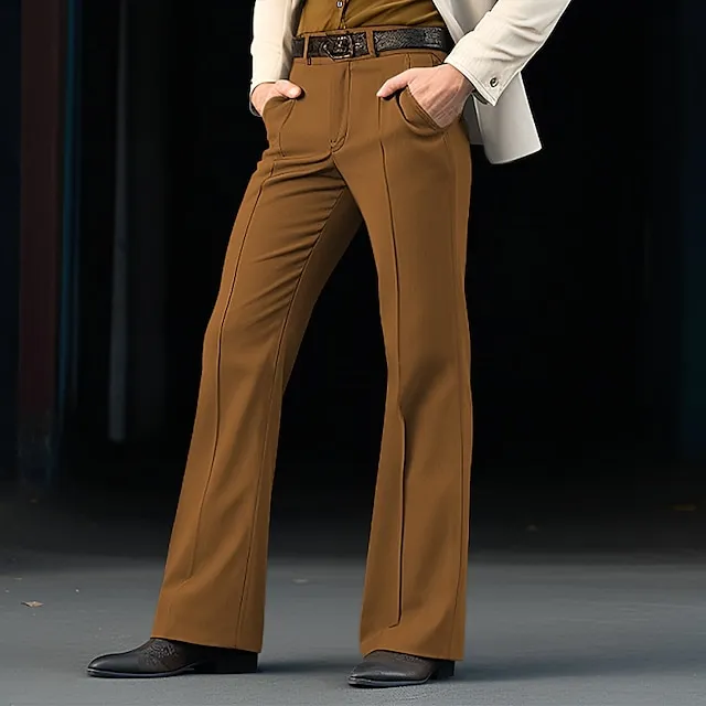 Men's Dress Pants Flared Pants Trousers Pocket Plain Comfort Breathable Outdoor Daily Going out Fashion Casual White Khaki