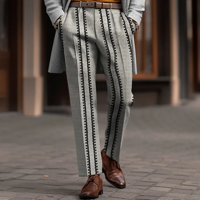 Men’s Dress Pants Trousers Casual Pants Tweed Pants Front Pocket Straight Leg Stripe Comfort Business Daily Holiday Fashion Chic & Modern Black Brown