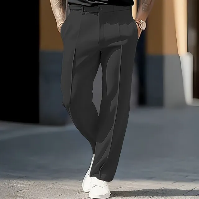 Men’s Dress Pants Trousers Pocket Straight Leg Plain Comfort Breathable Outdoor Daily Going out Fashion Casual Black White