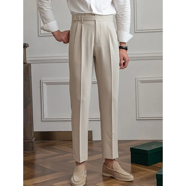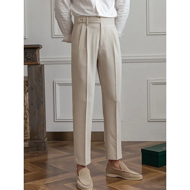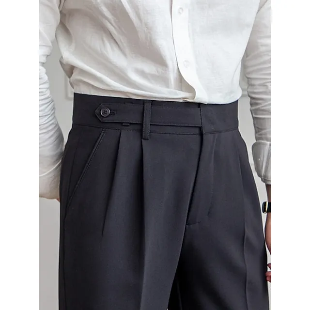Men's Dress Pants Trousers Suit Pants Gurkha Pants Pleated High Rise Plain Comfort Breathable Outdoor Daily Going out Vintage Elegant Black Khaki