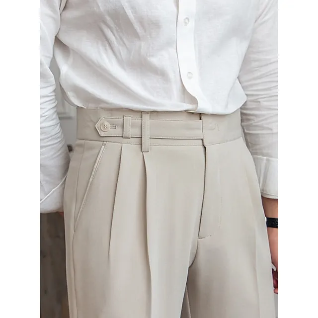 Men’s Dress Pants Trousers Suit Pants Gurkha Pants Pleated High Rise Plain Comfort Breathable Outdoor Daily Going out Vintage Elegant Black Khaki