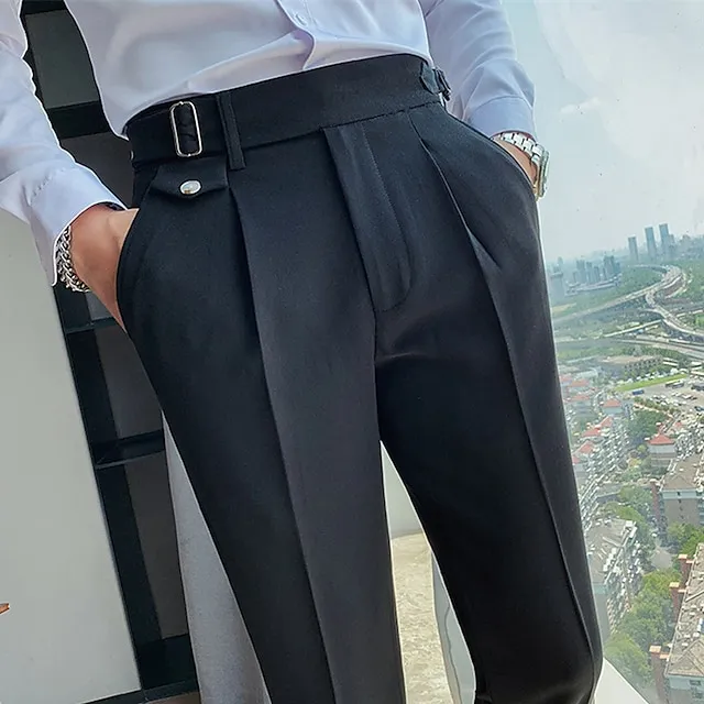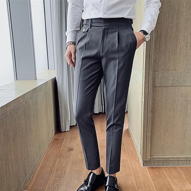Men's Dress Pants Trousers Suit Pants Gurkha Pants Pocket High Rise Plain Comfort Soft Wedding Office Business Vintage Classic Dark Khaki Black Micro-elastic