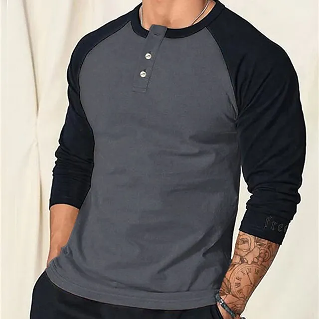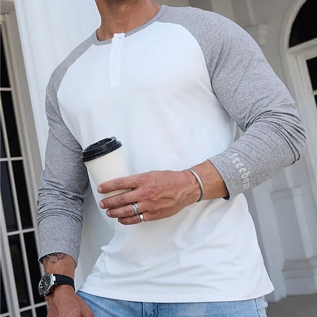 Men's Henley Shirt Tee Top Long Sleeve Shirt Color Block Raglan Sleeve Henley Street Vacation Long Sleeve Patchwork Clothing Apparel Fashion Designer Basic