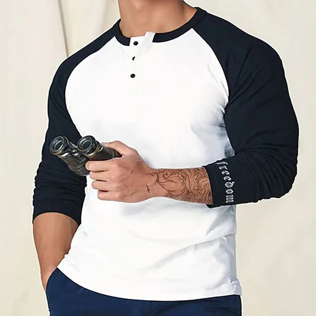 Men’s Henley Shirt Tee Top Long Sleeve Shirt Color Block Raglan Sleeve Henley Street Vacation Long Sleeve Patchwork Clothing Apparel Fashion Designer Basic