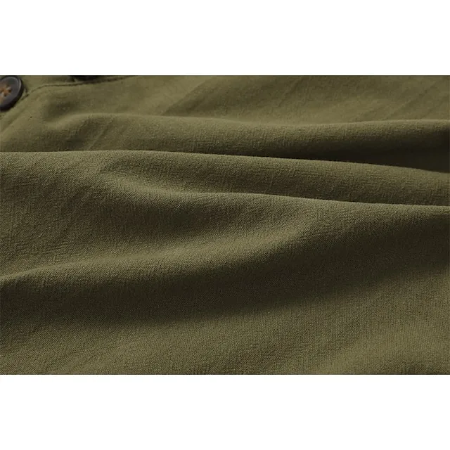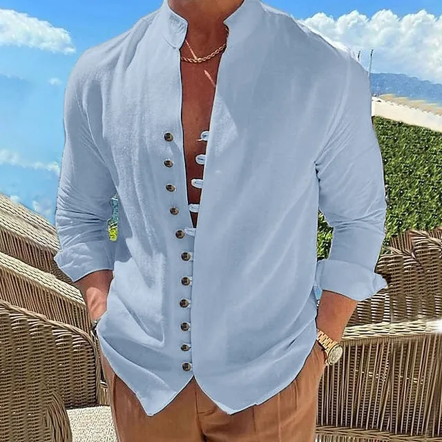 Men’s Linen Shirt Shirt Button Up Shirt Casual Shirt Summer Shirt Black White Pink Long Sleeve Plain Band Collar Summer Spring & Fall Daily Vacation Clothing Apparel
