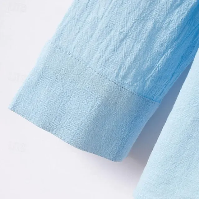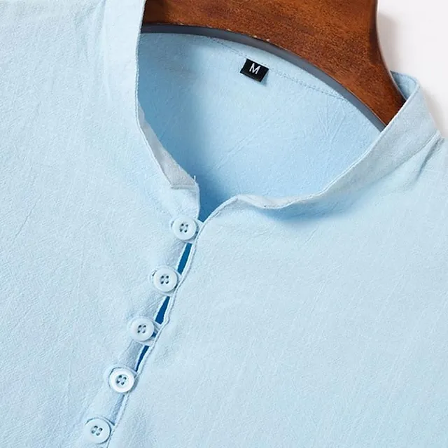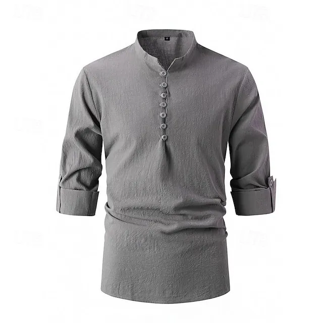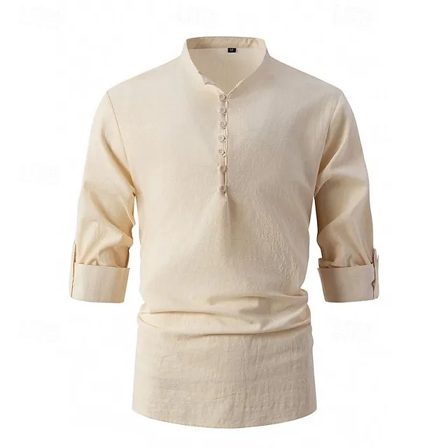 Men’s Linen Shirt Shirt Casual Shirt Black White Navy Blue Long Sleeve Plain Standing Collar Spring & Fall Hawaiian Holiday Clothing Apparel