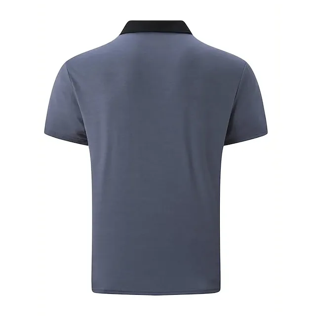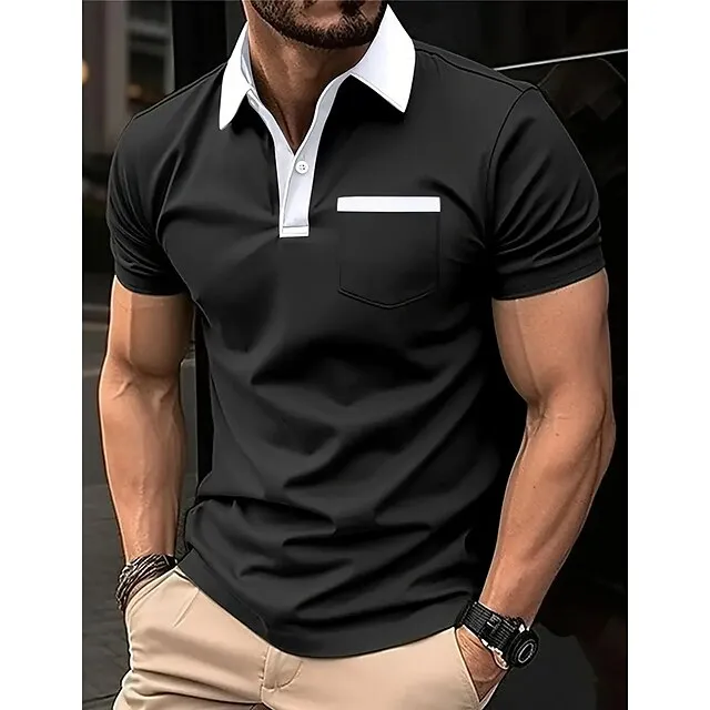 Men's Polo Shirt Button Up Polos Business Casual Lapel Short Sleeve Fashion Basic Color Block Patchwork Pocket Summer Regular Fit Black White Navy Blue Brown Gray Polo Shirt