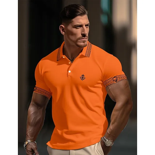 Men’s Polo Shirt Golf Shirt Casual Holiday Lapel Short Sleeve Fashion Basic Color Block Lion Patchwork Summer Regular Fit Orange Polo Shirt
