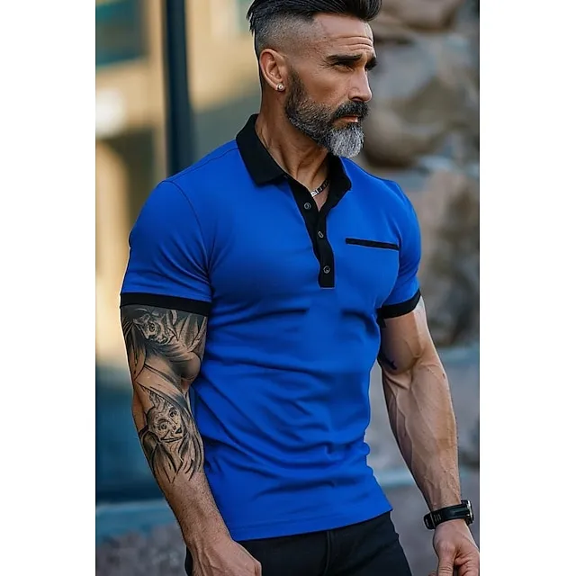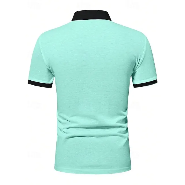 Men’s Polo Shirt Golf Shirt Casual Holiday Lapel Short Sleeve Fashion Basic Color Block Patchwork Pocket Summer Regular Fit Royal Blue Mint Green Polo Shirt