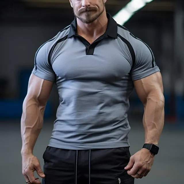 Men’s Polo Shirt Sport Polo Casual Sports Lapel Short Sleeve Fashion Basic Color Block Patchwork Summer Regular Fit Gray Polo Shirt
