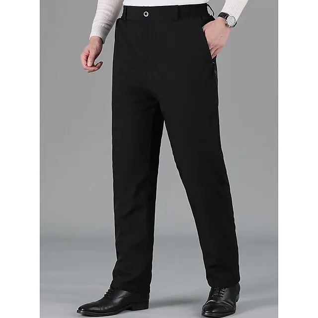 Men’s Sherpa Dress Pants Winter Pants Trousers Suit Pants Pocket Plain Comfort Breathable Outdoor Daily Going out Fashion Casual Black Deep Blue