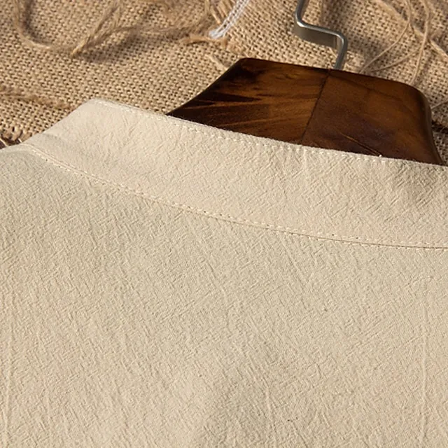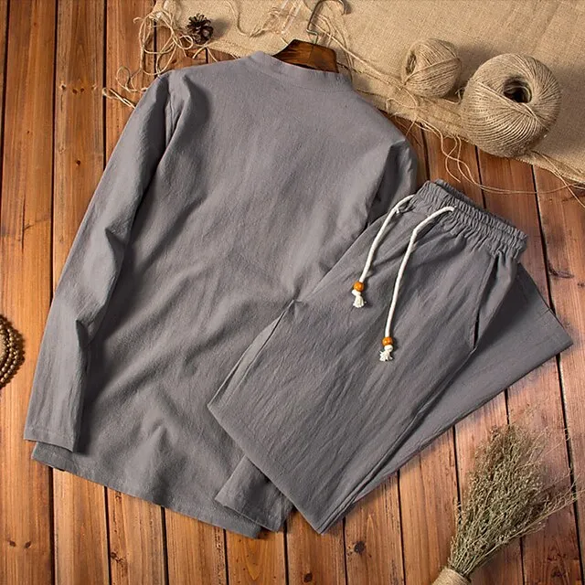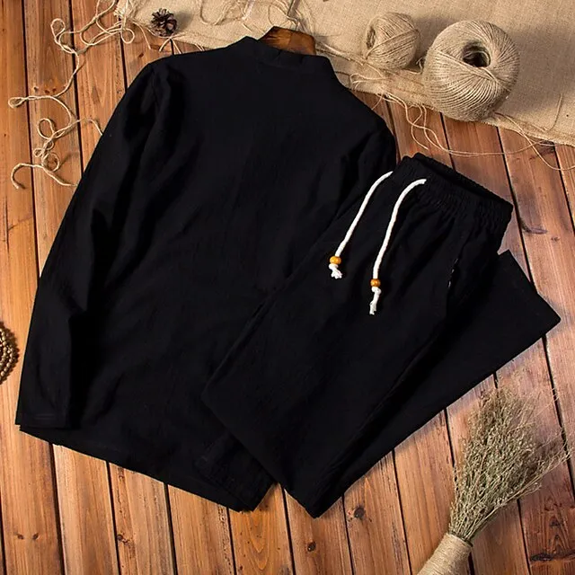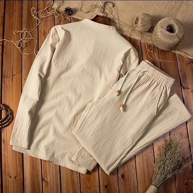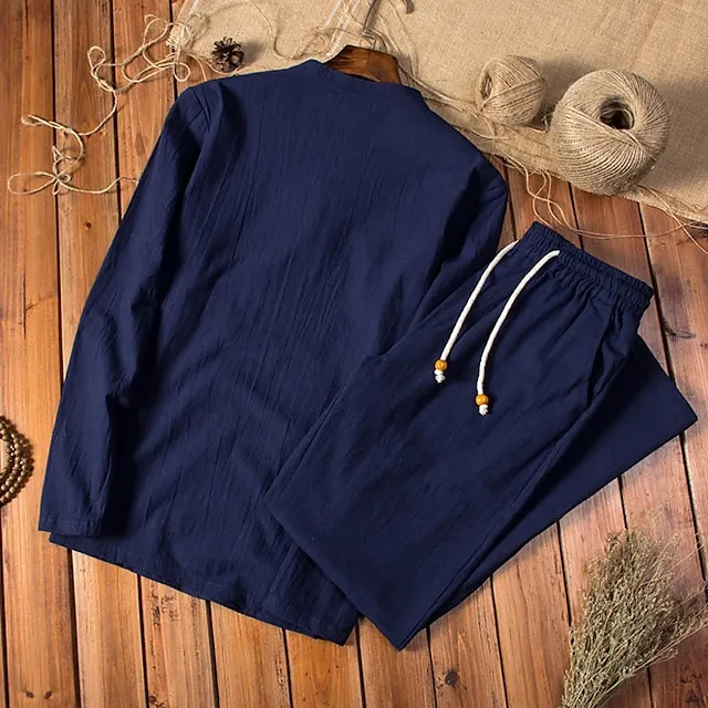 Men’s Shirt Shirt Set Summer Shirt Beach Shirt Black Navy Blue Khaki Long Sleeve Plain Collar Spring & Summer Casual Daily Clothing Apparel 2 Piece