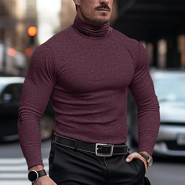 Men’s T shirt Tee Henley Shirt Tee Top Long Sleeve Shirt Plain Turtleneck Street Vacation Long Sleeve Clothing Apparel Fashion Designer Basic