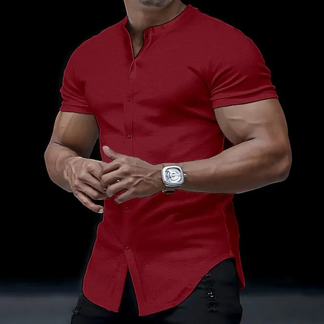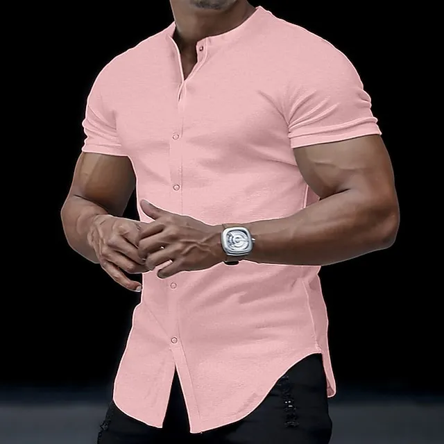Men’s T shirt Tee Tee Top Plain Collar Street Vacation Short Sleeves Button Clothing Apparel Fashion Designer Basic