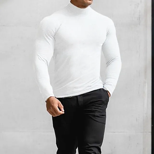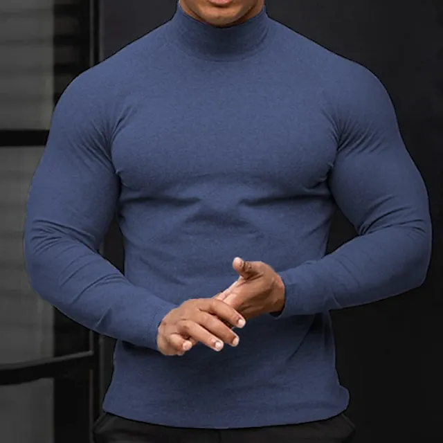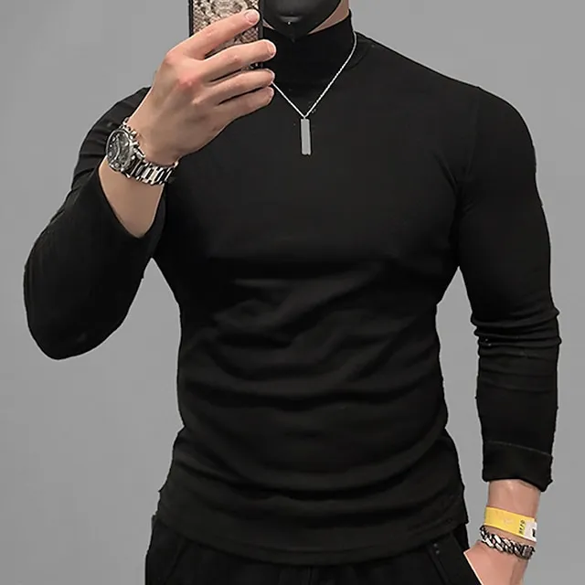 Men’s T shirt Tee Turtleneck shirt Long Sleeve Shirt Holiday Rolled collar Holiday Vacation Long Sleeve Clothing Apparel Casual Comfortable Essential