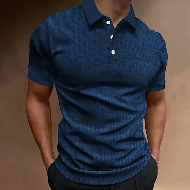 Men’s Waffle Polo Shirt Casual Daily Polo Collar Classic Short Sleeve Fashion Casual Solid Colored Button Front Spring & Summer Regular Fit Black White Dark Navy Blue Khaki Gray Waffle Polo Shirt