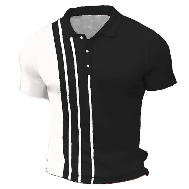 Men’s Waffle Polo Shirt Golf Shirt Work Street Polo Collar Classic Short Sleeve Fashion Casual Striped Button Front Summer Spring Spring & Summer Regular Fit Black Pink Army Green Blue Light Grey