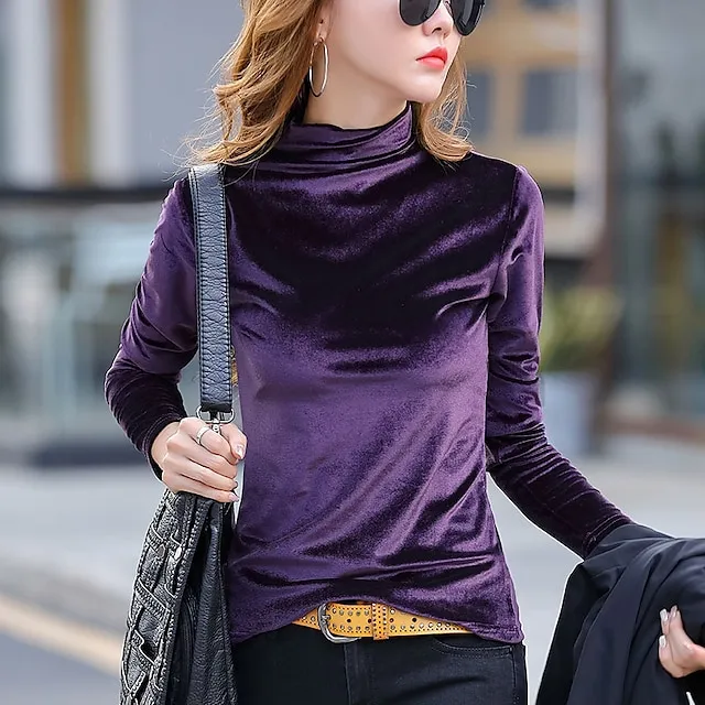 Shirt Blouse Women’s Black Army Green Brown Solid / Plain Color Sexy Daily Warm Fashion High Neck Velvet Regular Fit S