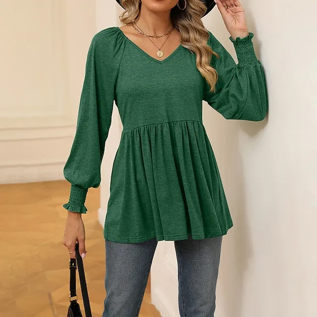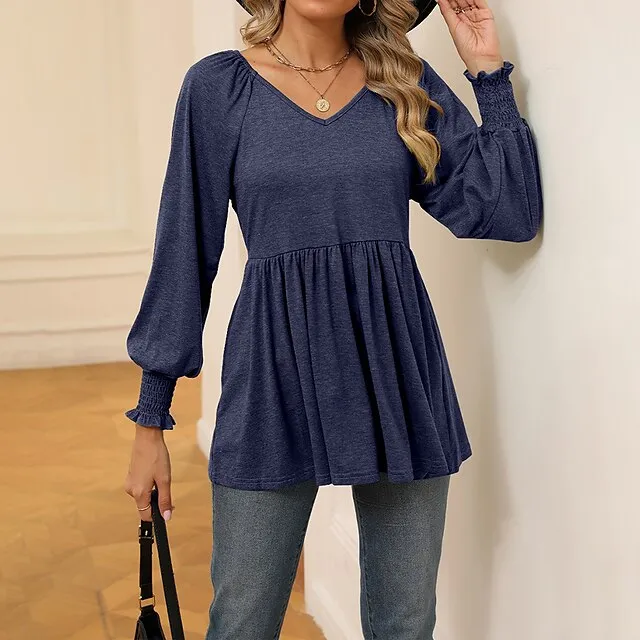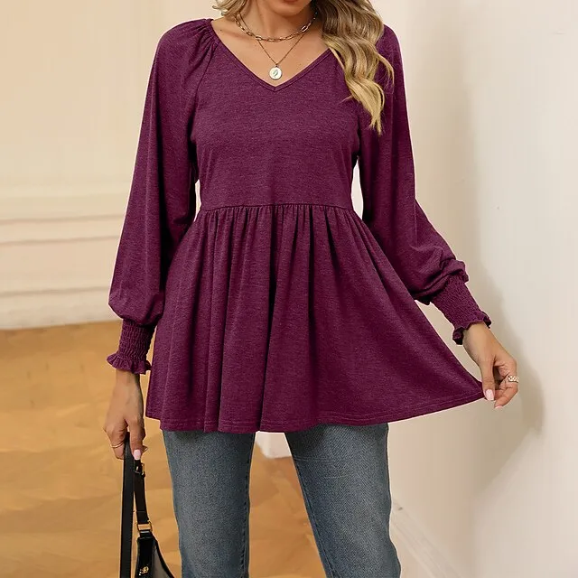 Shirt Blouse Women’s Black White Wine Solid / Plain Color Flowing tunic Daily Fashion V Neck Regular Fit S