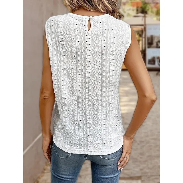 Tank Women's White Solid Color Lace Street Daily Fashion Round Neck S