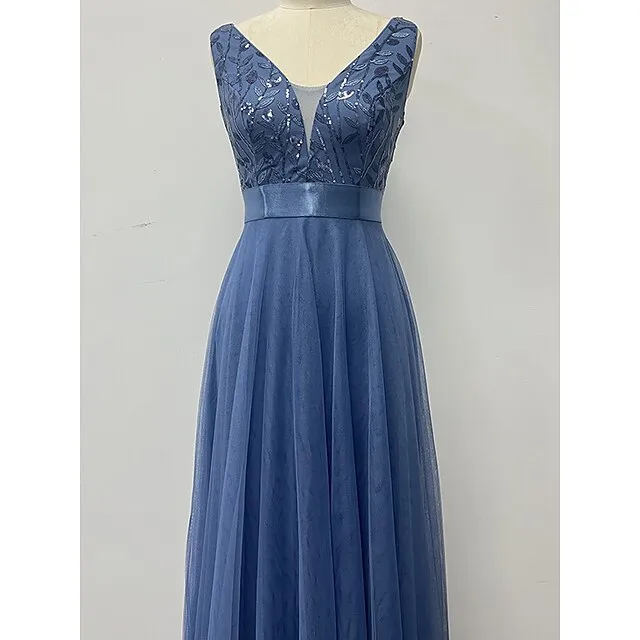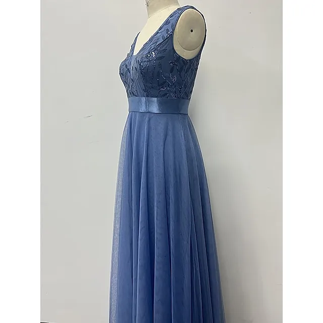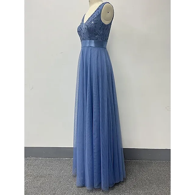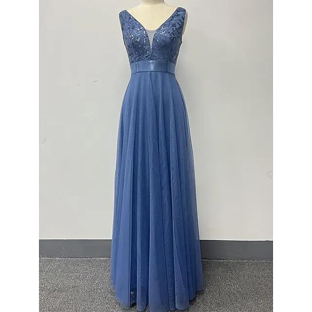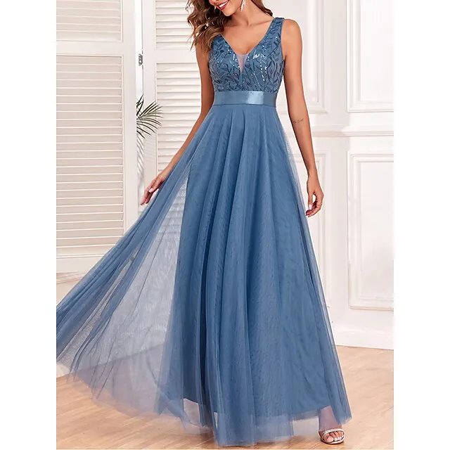 Women’s Sequin Dress Prom Dress Party Dress Sparkly Dress Long Dress Maxi Dress Blue Sleeveless Sparkly Glitter Fall Winter V Neck Fashion Evening