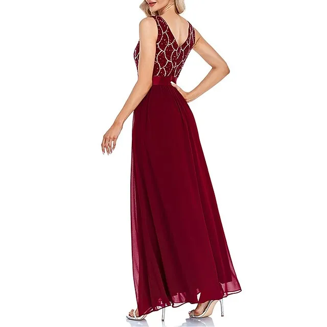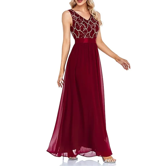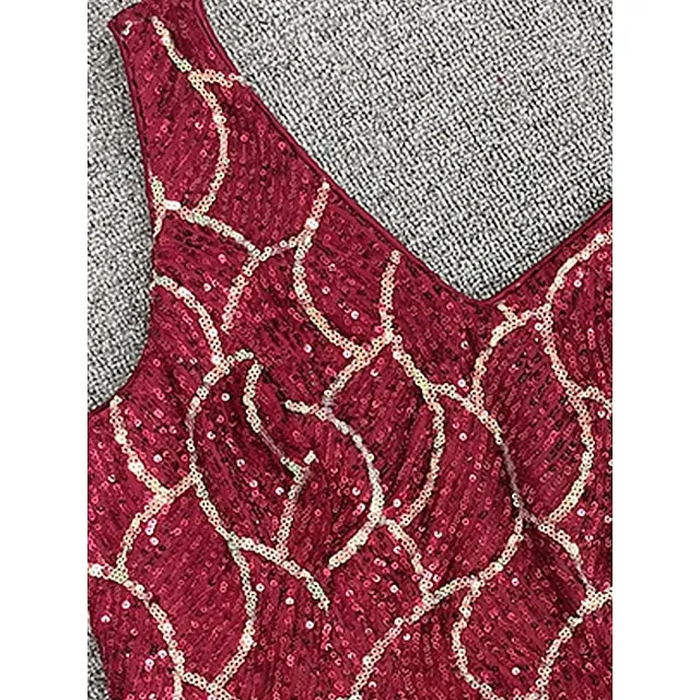 Women’s Sequin Dress Prom Dress Party Dress Sparkly Dress Long Dress Maxi Dress Wine Sleeveless Geometric Sparkly Glitter Fall Winter V Neck Fashion Evening 202