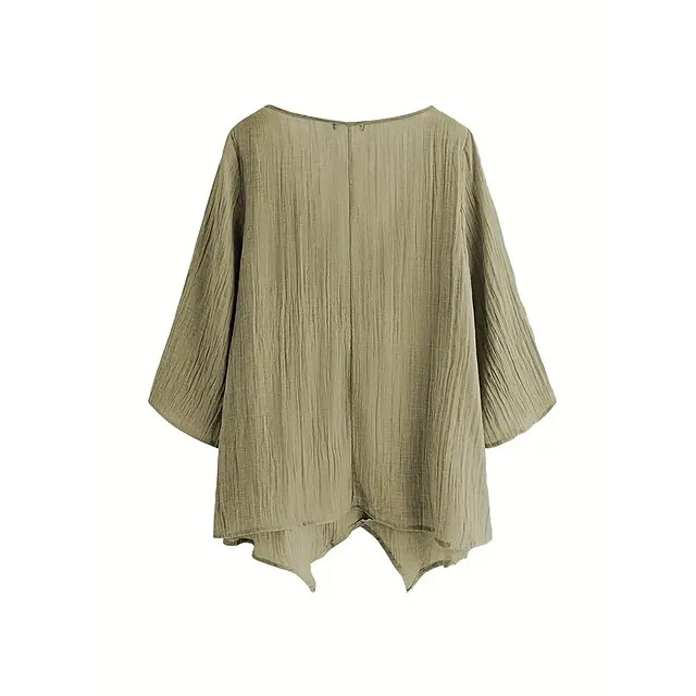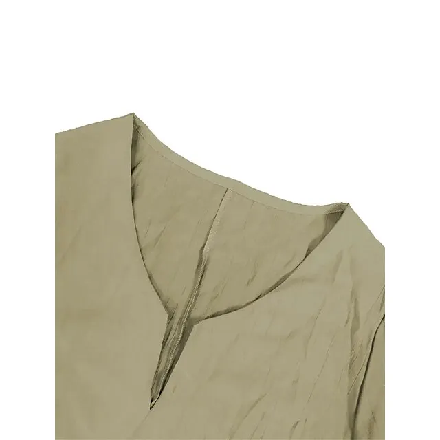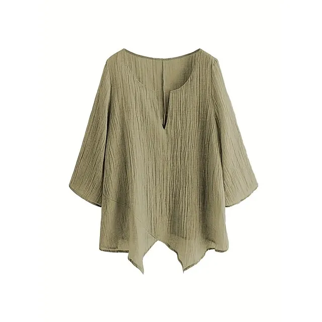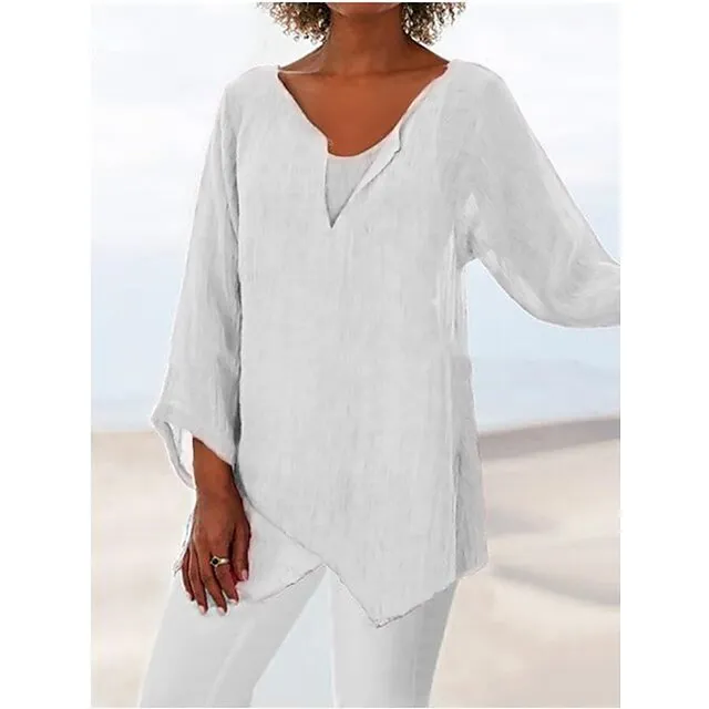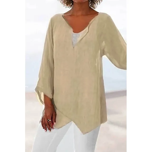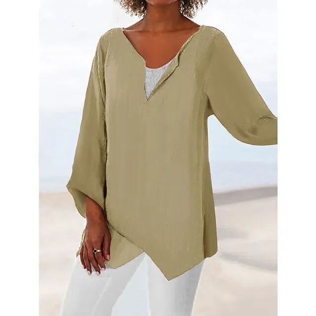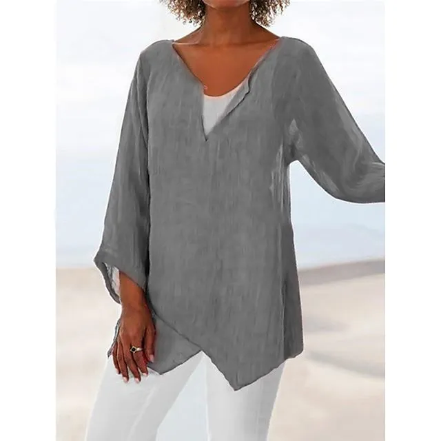 Women’s Shirt Blouse Linen Plain Casual Blue Grey Asymmetric Long Sleeve Daily Basic V Neck Regular Fit Fall & Winter