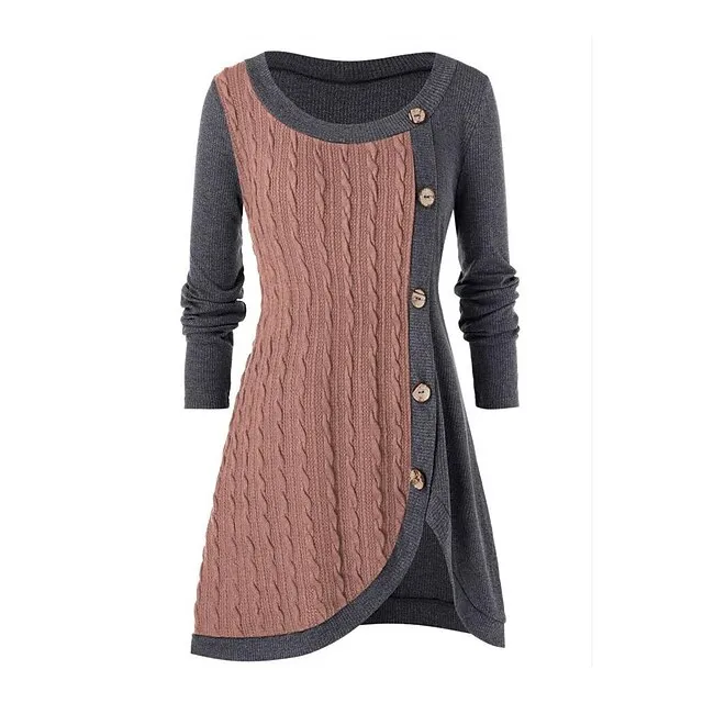 Women's Sweater Dress Jumper Dress Casual Dress Mini Dress Knitwear Fashion Modern Street Daily Holiday Vacation Crew Neck Long Sleeve Patchwork Button Loose Fit Pink Wine Purple L XL XXL 3XL